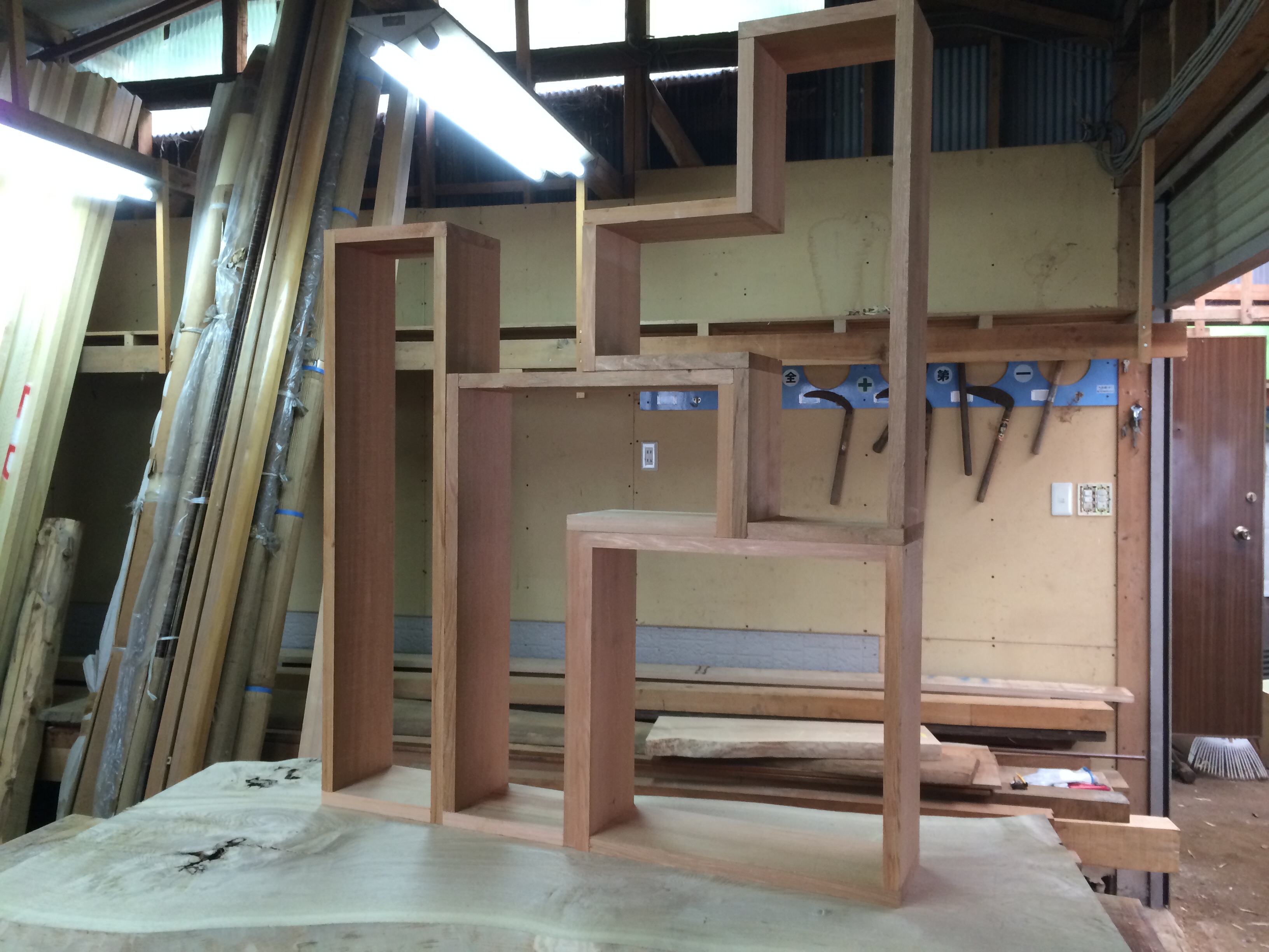 懐かしのあのゲーム、テトリスのブロックの形に見立てた棚を作製致しました。